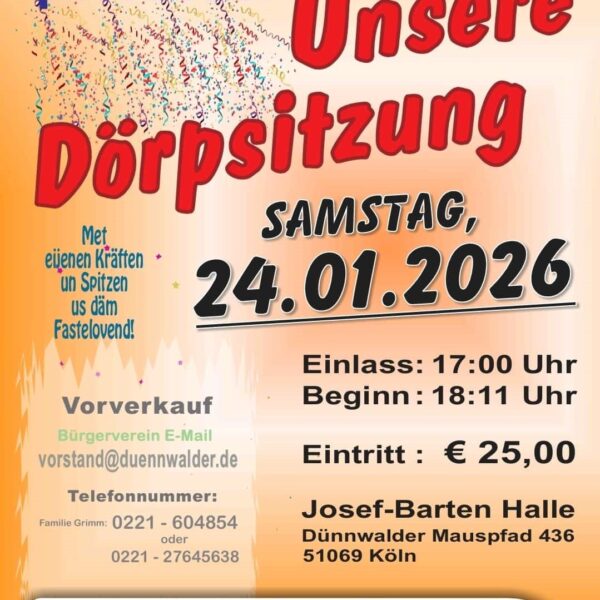 Am Samstag, 24.01.2026, ist es wieder so weit. Ein muss für alle Freunde des bodenständigen Karnevals.